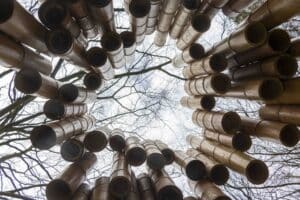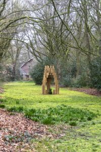 Op de buitententoonstelling ‘In het begin: ode aan de natuur’ zult u zeven kunstwerken vinden, elk gemaakt door verschillende kunstenaars of architecten. Elk kunstwerk heeft als inspiratie de tekst uit Genesis behorend bij die betreffende dag. Hoewel de kunstenaars zelf niet per se gelovig zijn, hebben zij zich laten inspireren door deze teksten en dit geuit in hun kunstwerk.