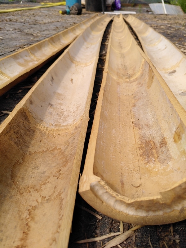 Buiten gaan halve bamboepalen ongeveer 5 jaar mee. Ze zijn kwetsbaarder dan hele palen door het ontbreken van de natuurlijke beschermlaag aan de binnenkant.